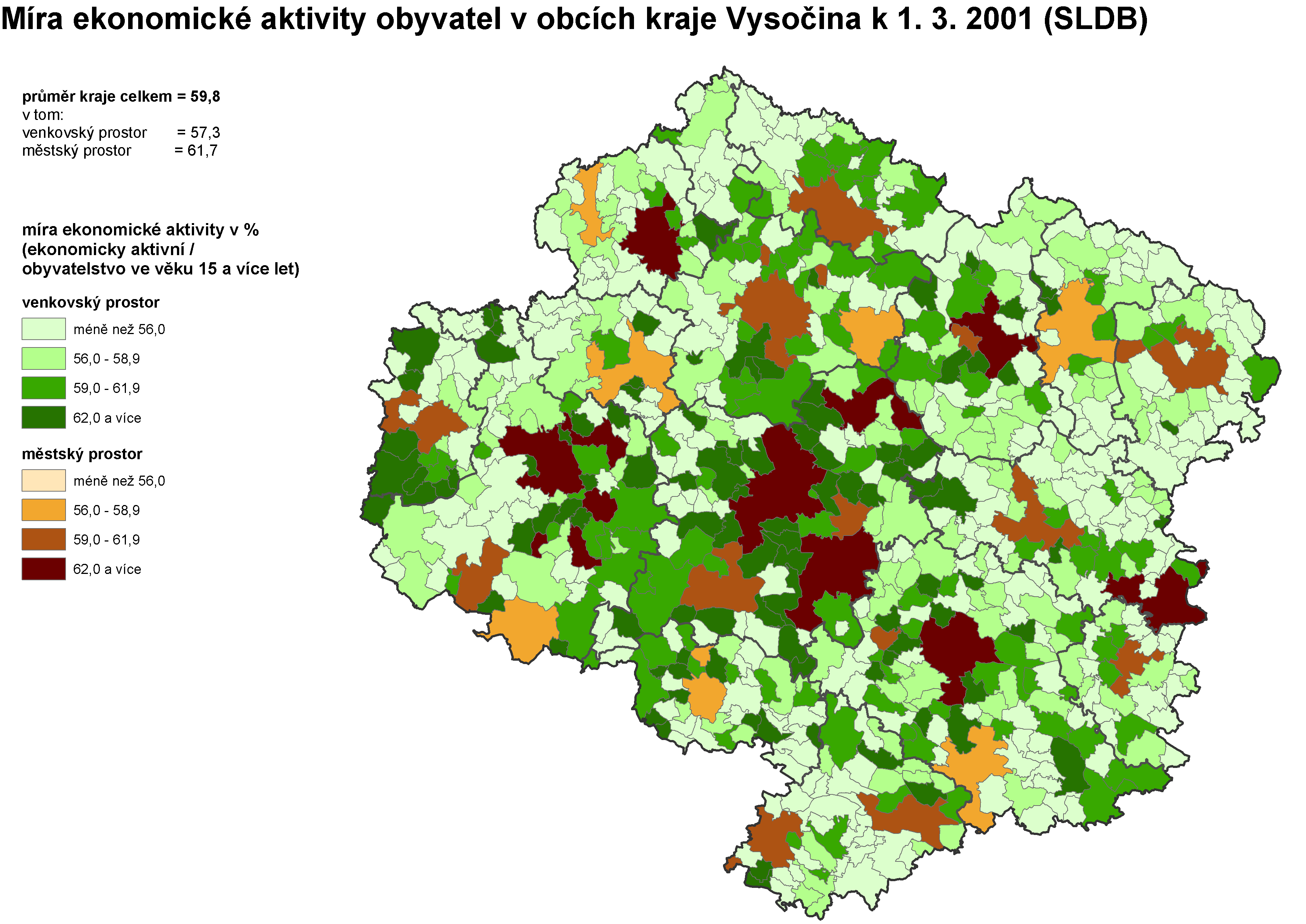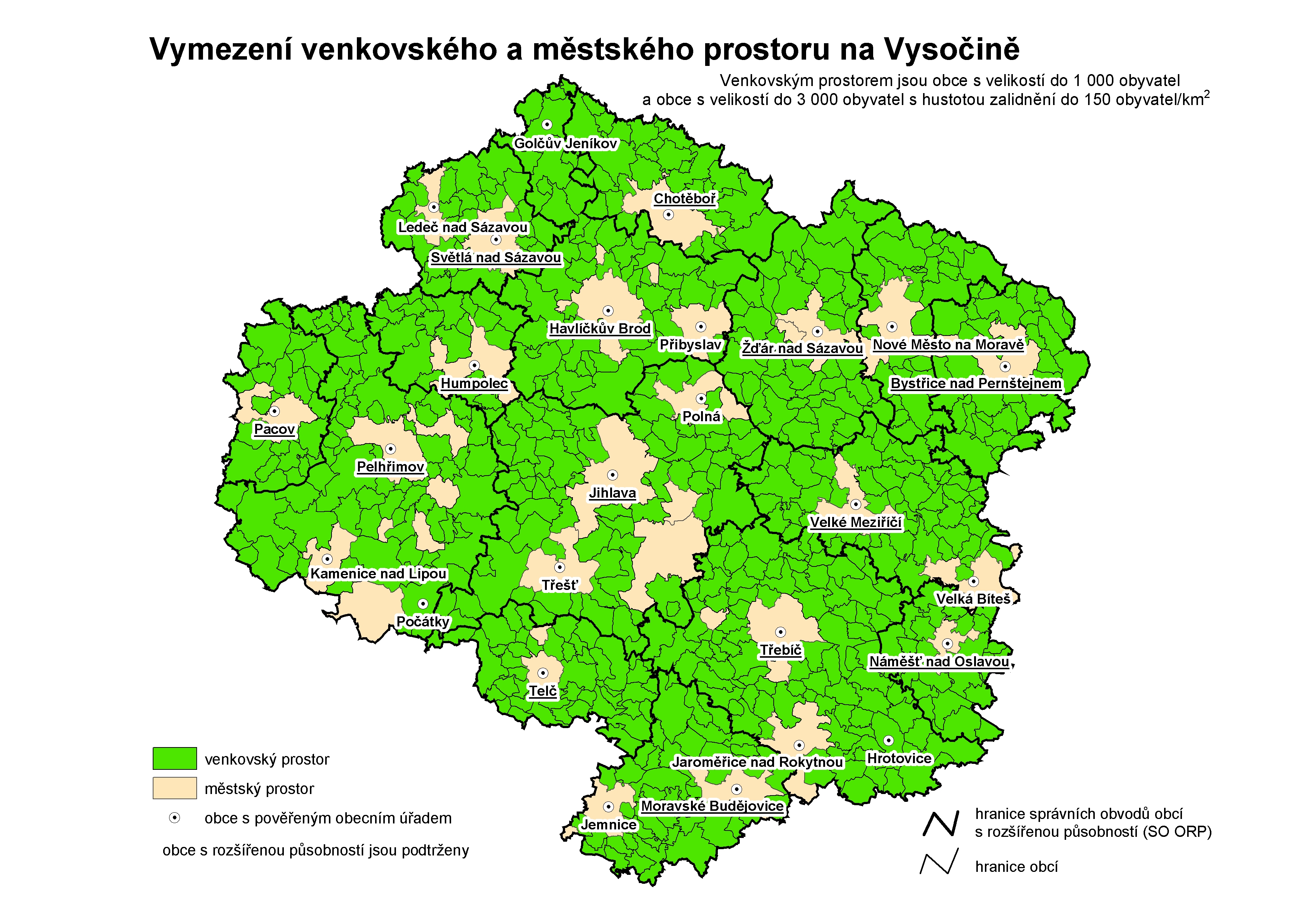 1. Vymezení venkovského a městského prostoru v kraji Vysočina