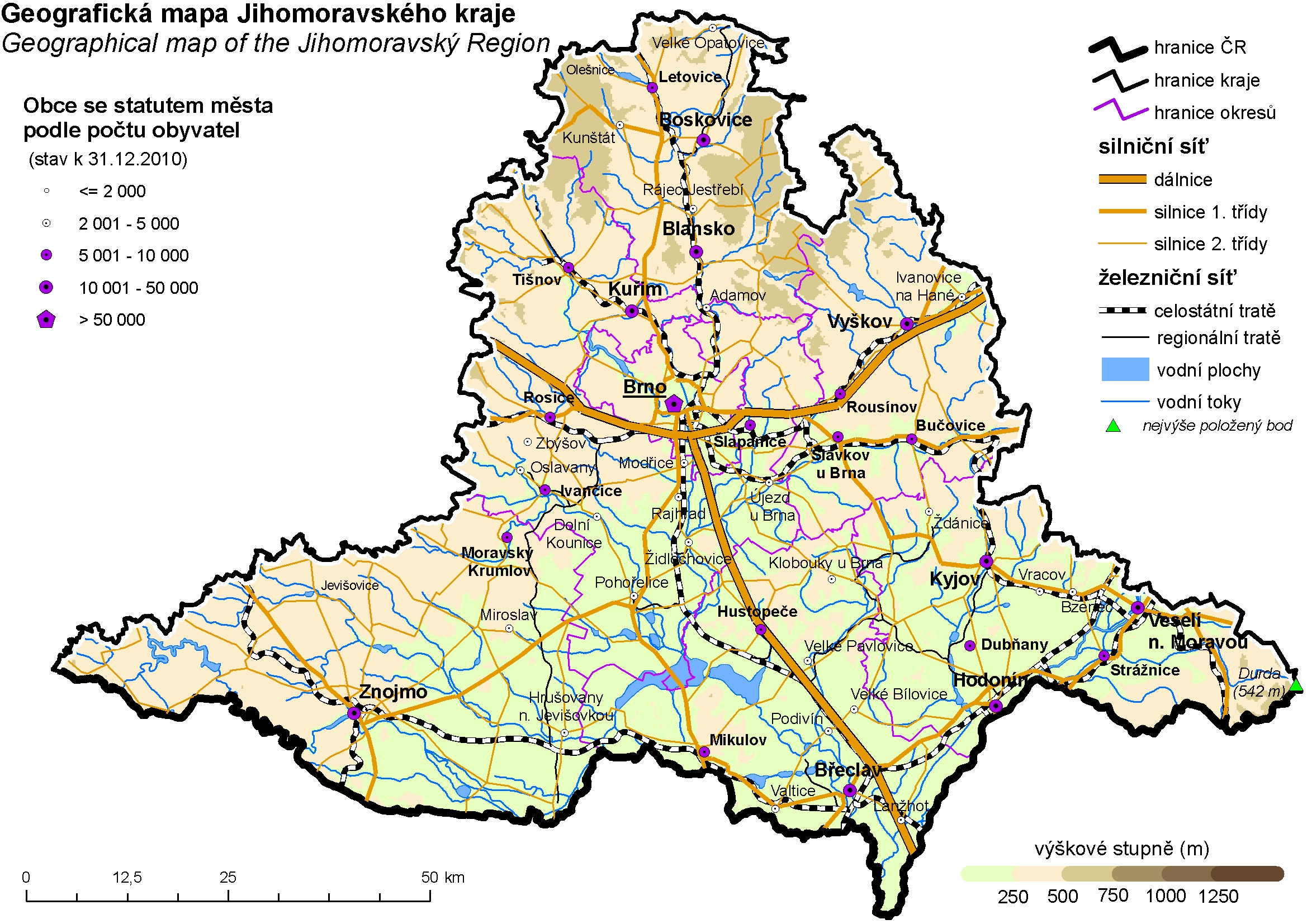 Geografická mapa Jihomoravského kraje