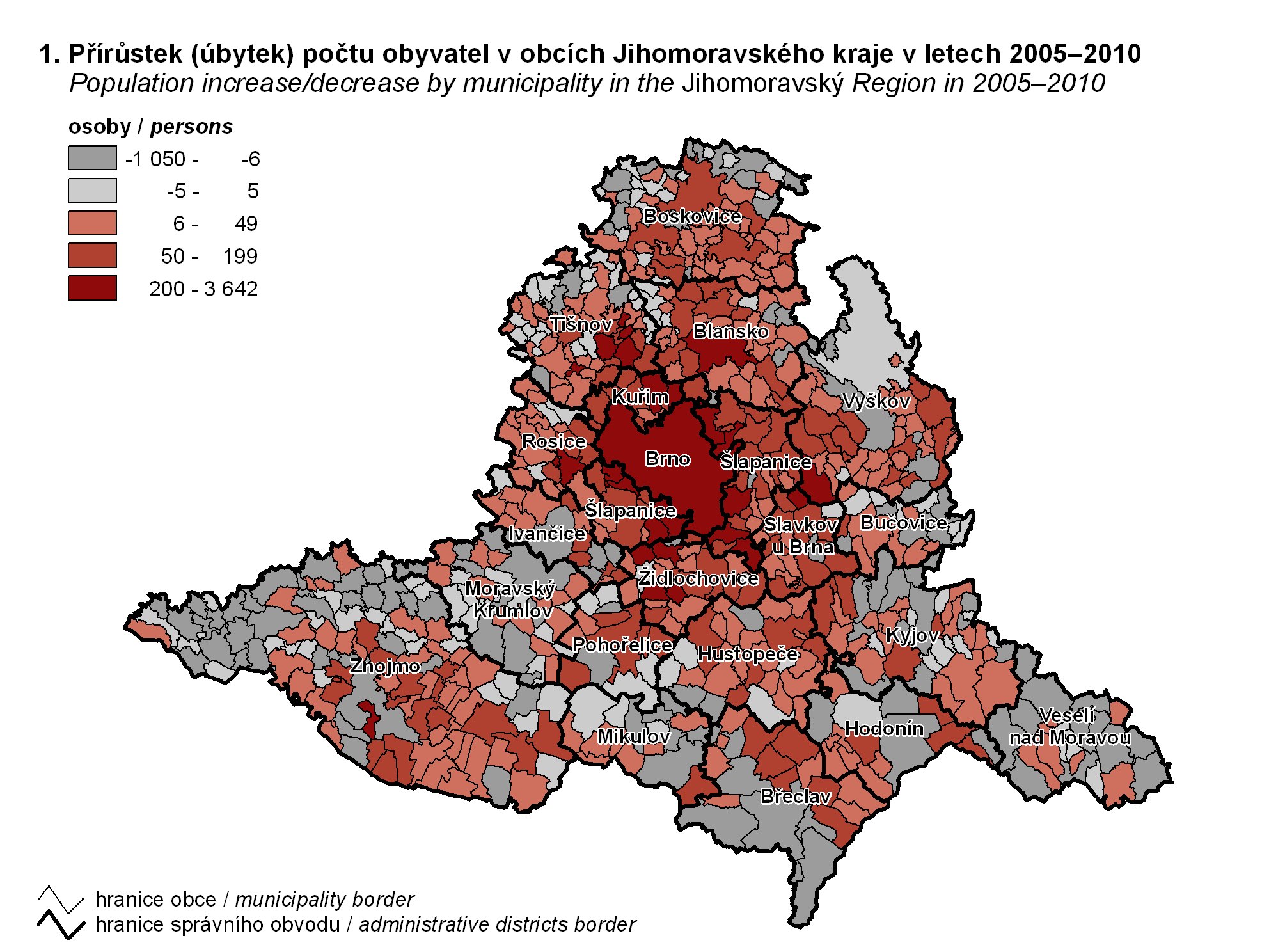 1. Přírůstek (úbytek) počtu obyvatel v obcích Jihomoravského kraje v letech 2005–2010