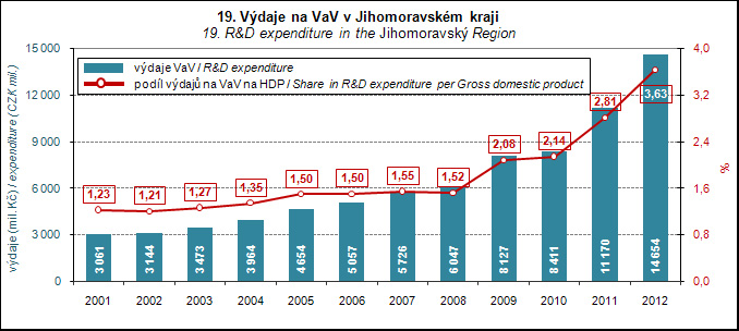 Graf 19. Výdaje na VaV v Jihomoravském kraji