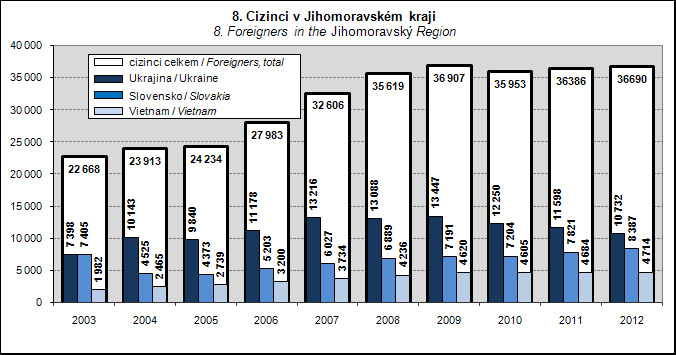 Graf 1. Porovnání vybraných ukazatelů Jihomoravského kraje s celorepublikovým průměrem v roce 2012