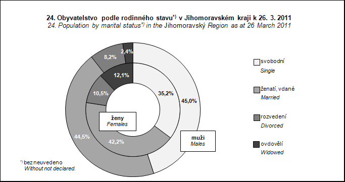 Graf 24. Obyvatelstvo podle rodinného stavu v Jihomoravském kraji k 26. 3. 2011