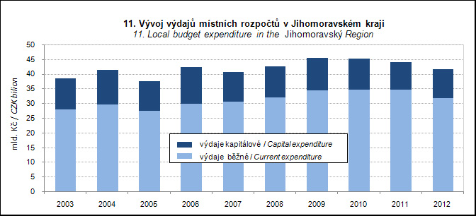 Graf 11. Vývoj výdajů místních rozpočtů v Jihomoravském kraji