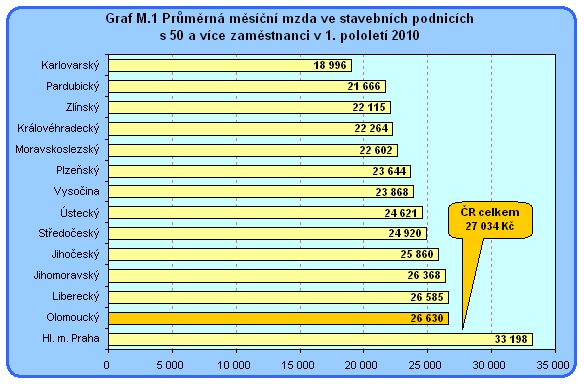 Graf - Průměrná měsíční mzda ve stavebních podnicích s 50 a více zaměstnanci
