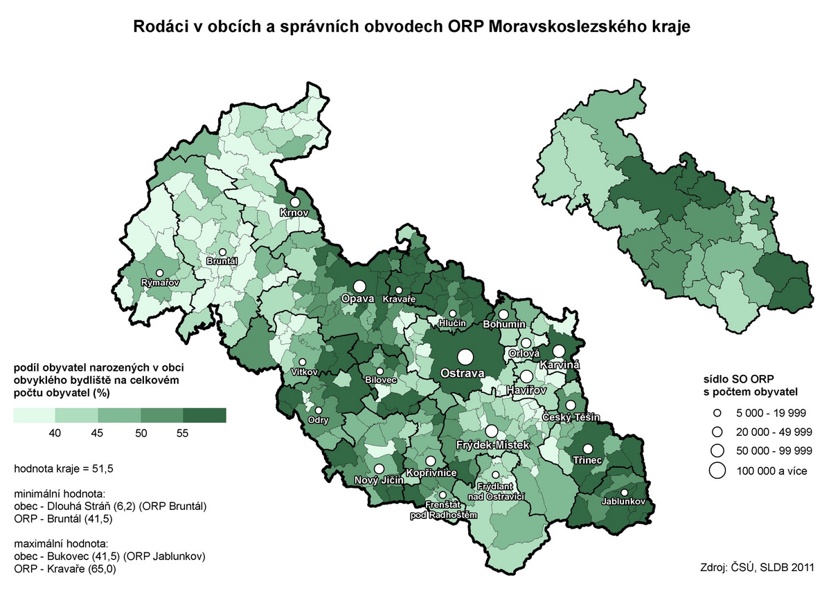 Rodáci v obcích a správních obvodech ORP Moravskoslezského kraje