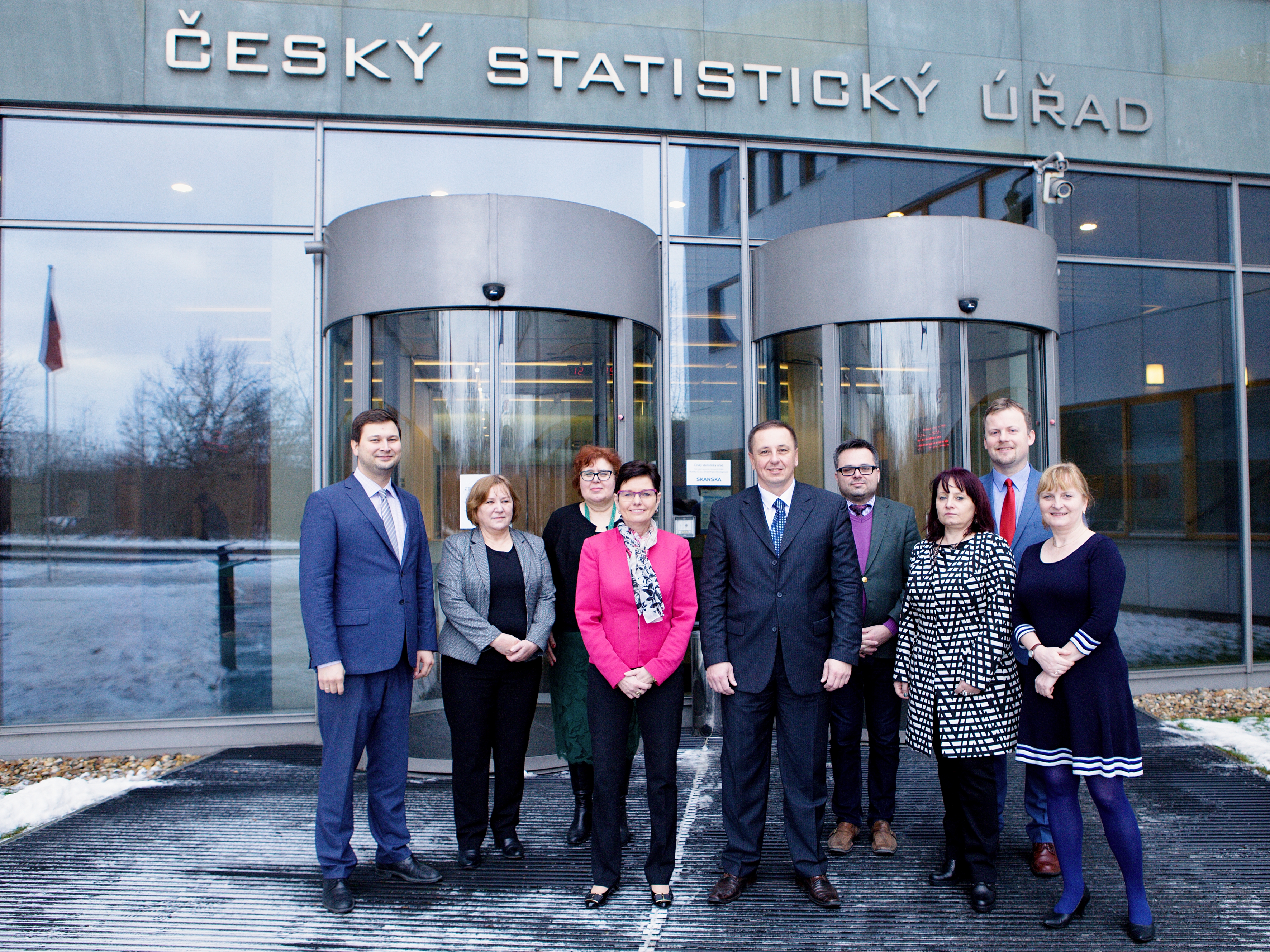 Předsedkyně ČSÚ Iva Ritschelová dnes spolu s užším vedením přivítala v pražském sídle ústředí předsedu ŠÚSR Alexandra Balleka (uprostřed) a jeho tým.