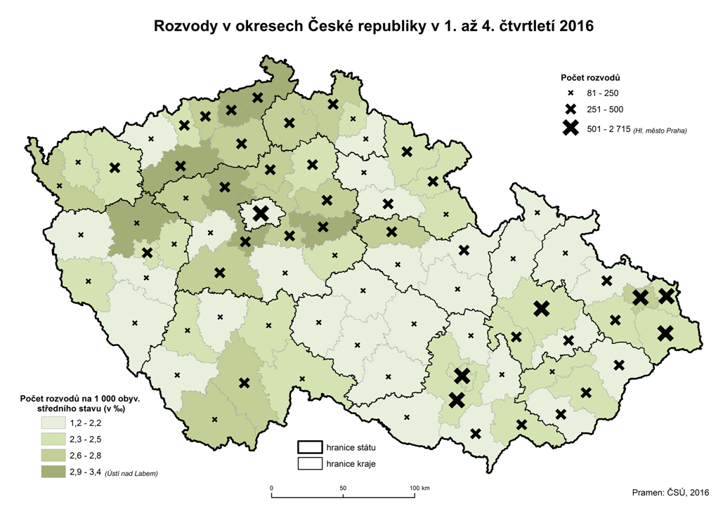 Rozvody v okresech České republiky v 1. až 4. čtvrtletí 2016