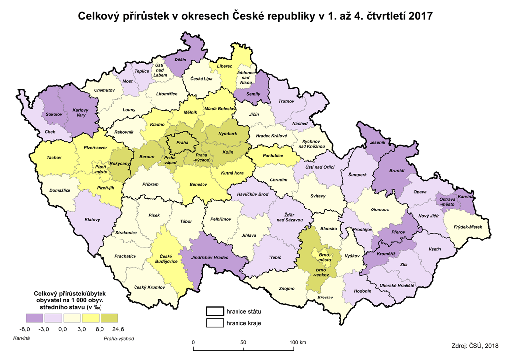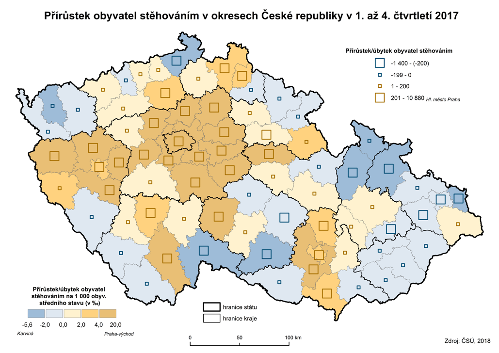 Přírůstek obyvatel stěhováním v okresech České republiky