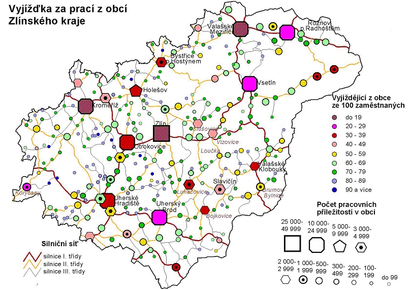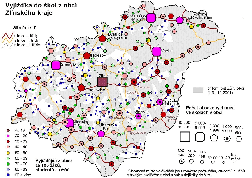 Dojížďka za prací a do škol v Zlínském kraji (na základě výsledků SLDB) - 2001