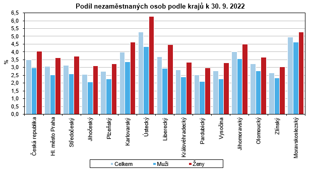 Podíl nezaměstnaných osob podle krajů k 30. 9. 2022