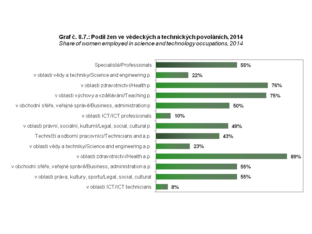 8.7. Podíl žen ve vědeckých a technických povoláních, 2014
