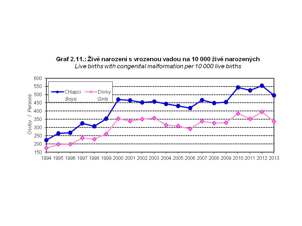 2.11. Živě narození s vrozenou vadou na 10 000 živě narozených