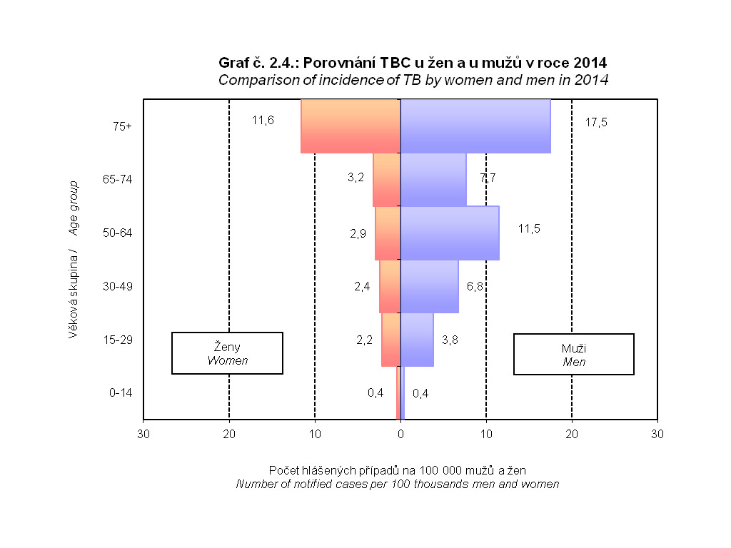 2.4. Porovnání TBC u žen a u mužů v roce 2014