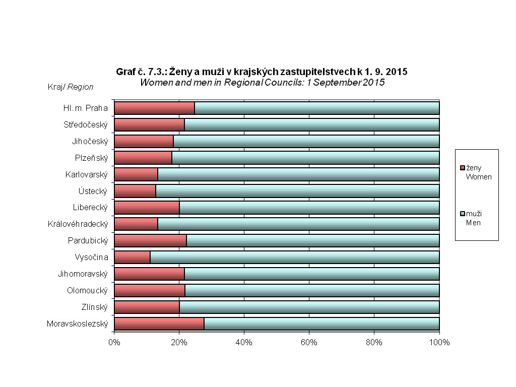 7.3. Ženy a muži v krajských zastupitelstvech k 1.9. 2015