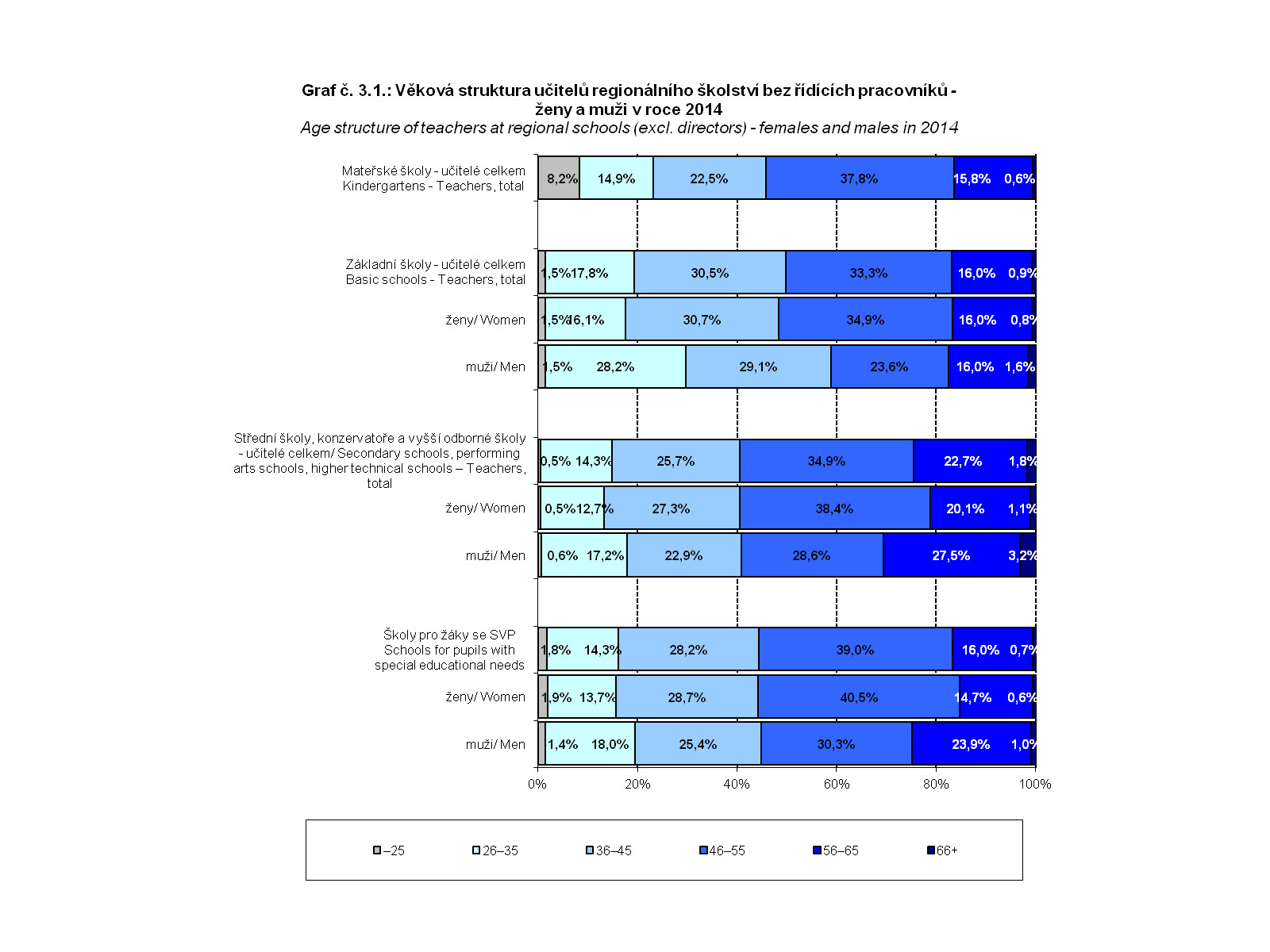 3.1. Věková struktura učitelů regionálního školství bez ředitelů - ženy a muži v roce 2014