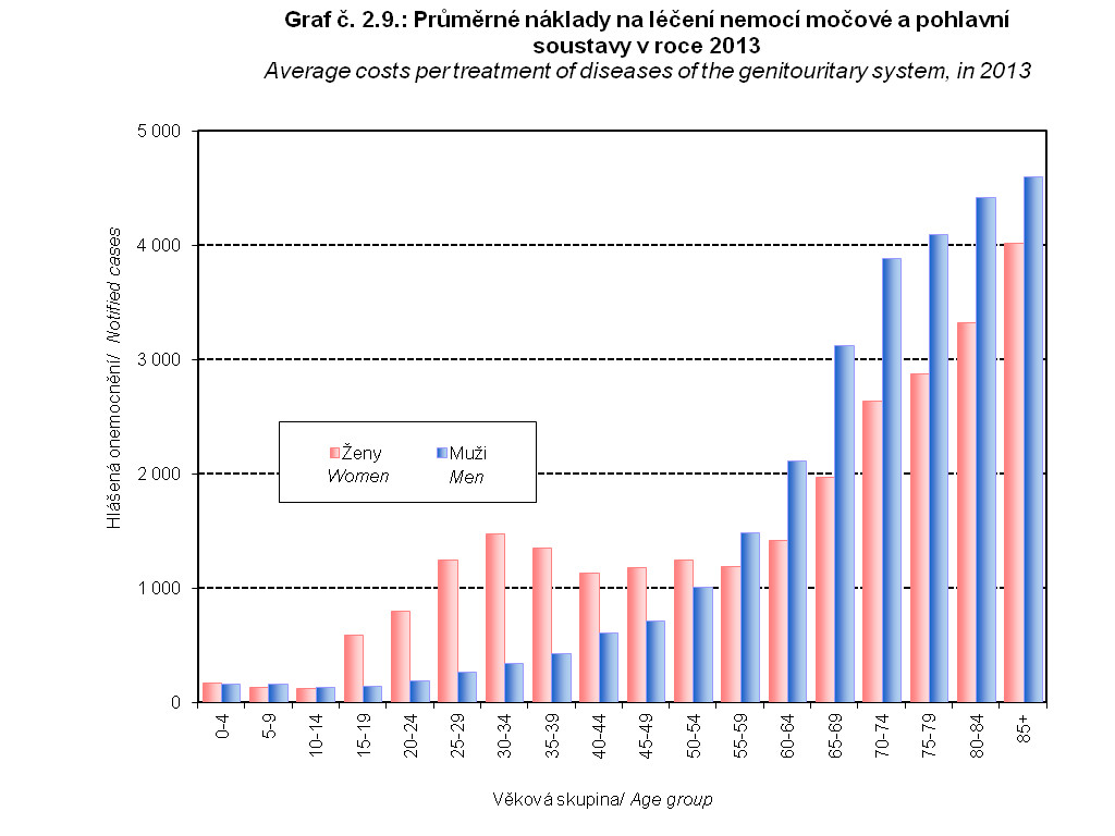 2.9. Průměrné náklady na léčení nemocí močové a pohlavní soustavy v roce 2013