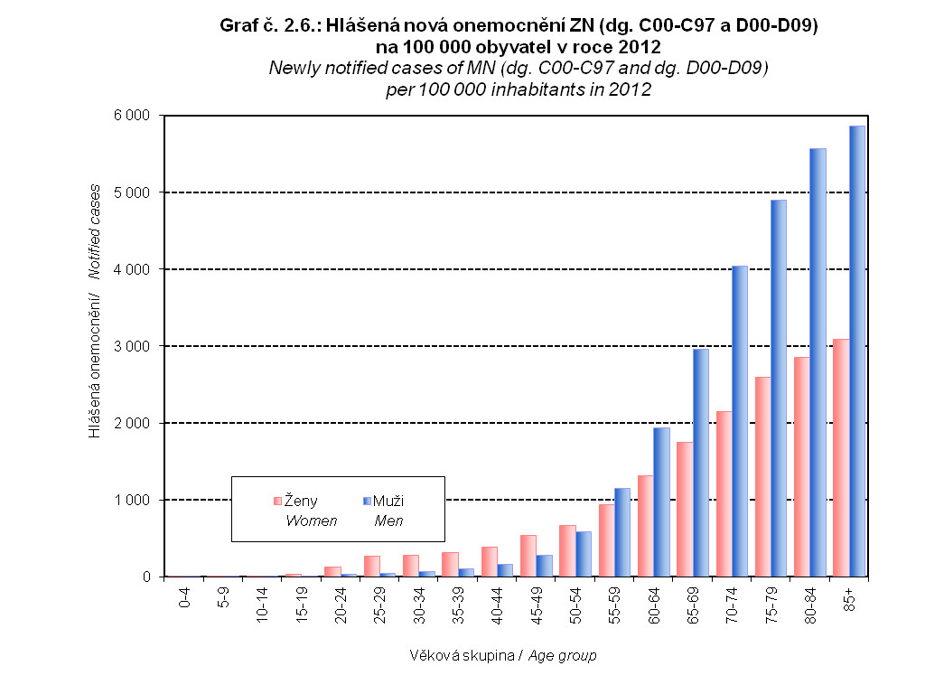 2.6. Hlášená onemocnění ZN (dg. C00-C97 a D00-D09) na 100 000 obyvatel v roce 2012