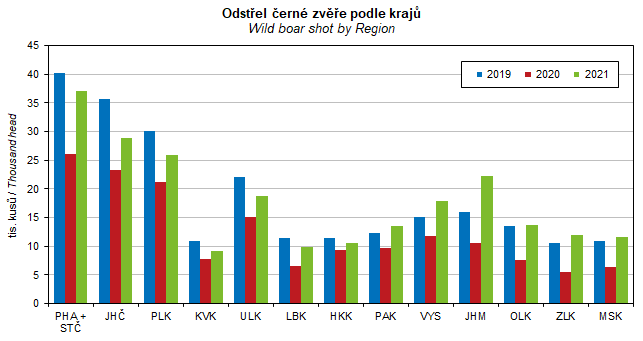 Graf 12-2. Odstřel černé zvěře podle krajů