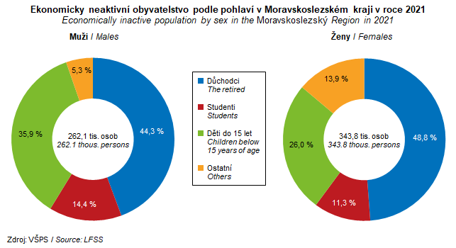 Graf 9-1. Ekonomicky neaktivní obyvatelstvo podle pohlaví v Moravskoslezském kraji v roce 2021