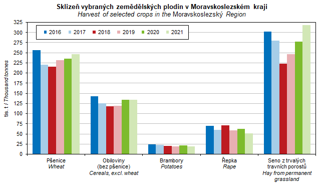 Graf 11-3. Sklizeň vybraných zemědělských plodin v Moravskoslezském kraji