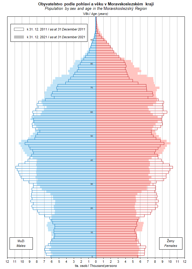 Graf 4-1. Obyvatelstvo podle pohlaví a věku v Moravskoslezském kraji