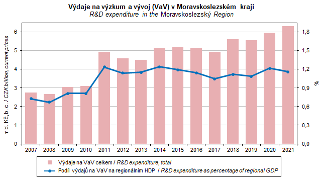 Graf 19-2. Výdaje na výzkum a vývoj v Moravskoslezském kraji