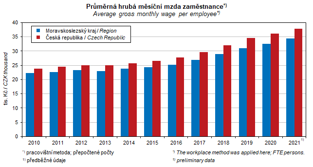 Graf 9-6. Průměrná hrubá měsíční mzda zaměstnance