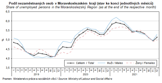 Graf 9-5. Podíl nezaměstnaných osob v Moravskoslezském kraji