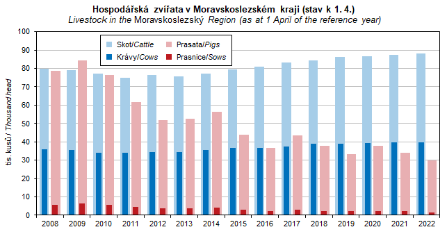 Graf 11-4. Hospodářská zvířata v Moravskoslezském kraji