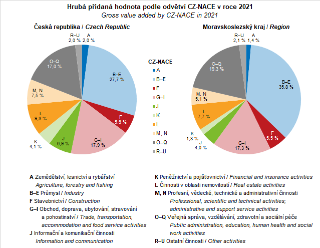 Graf 5-1. Hrubá přidaná hodnota podle odvětví CZ-NACE v roce 2021