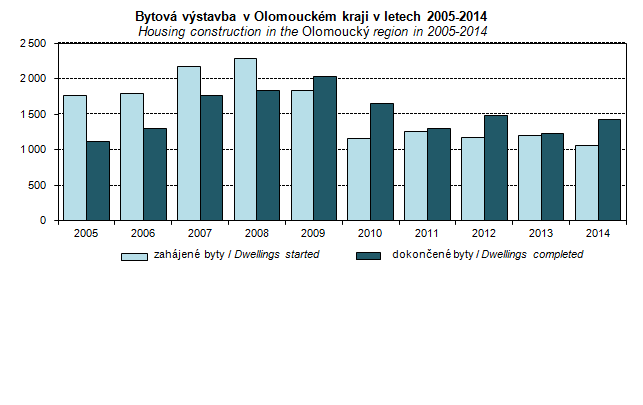Graf 21. Bytová výstavba v Olomouckém kraji v letech 2005–2014