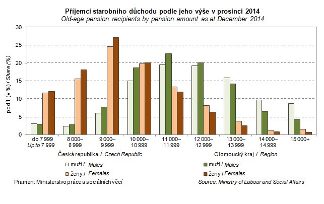 Graf 26. Příjemci starobního důchodu podle jeho výše v prosinci 2014