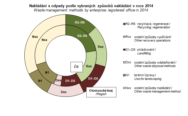 Graf 6. Nakládání s odpady podle vybraných způsobů nakládání v roce 2014