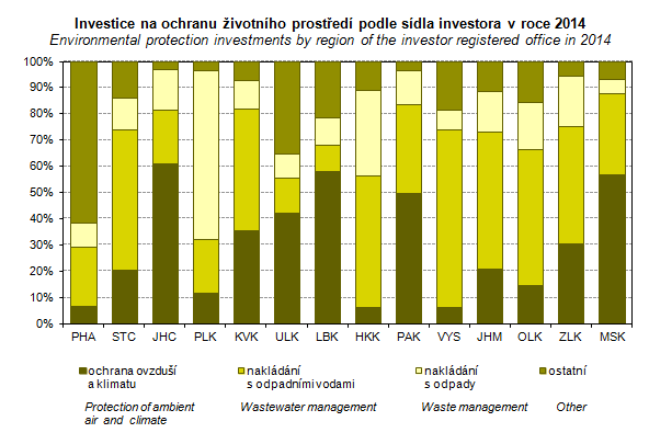 Graf 3. Investice na ochranu životního prostředí podle sídla investora v roce 2014