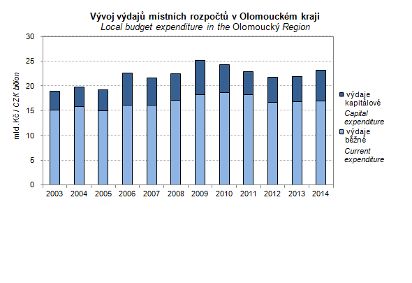 Graf 12. Vývoj výdajů místních rozpočtů v Olomouckém kraji