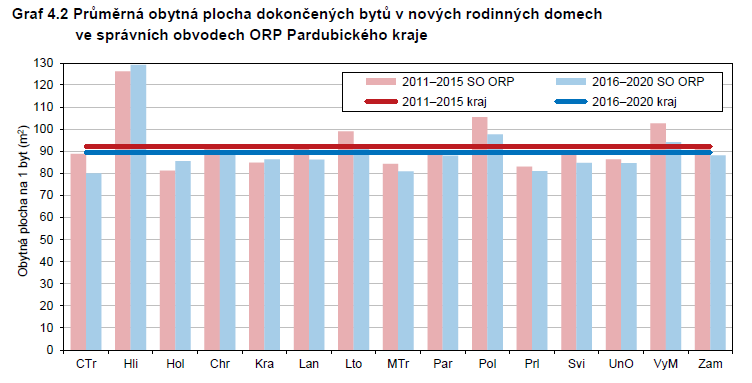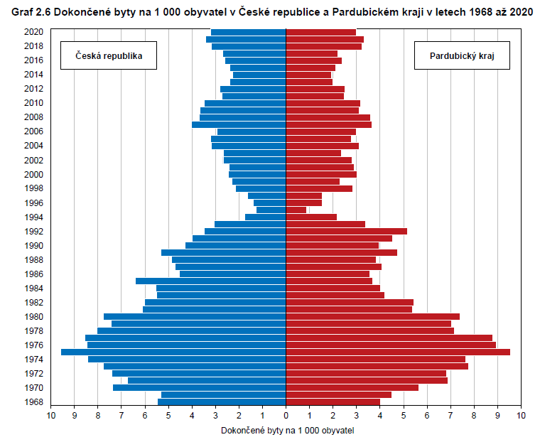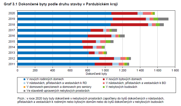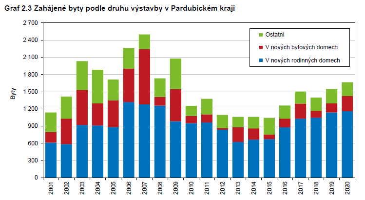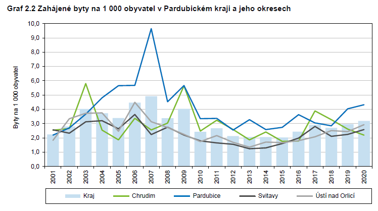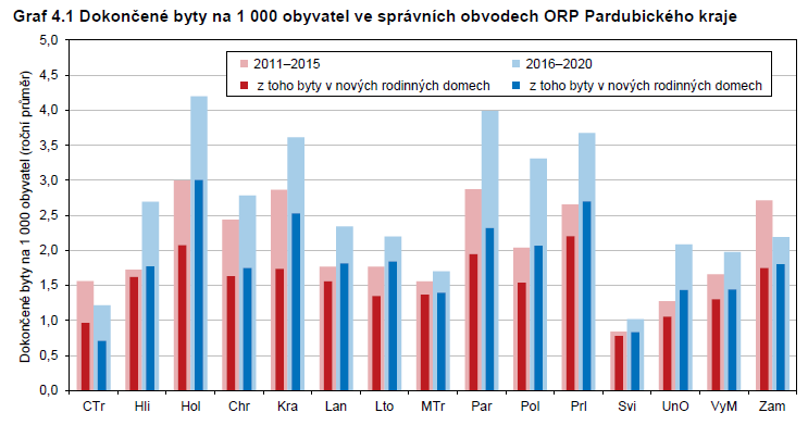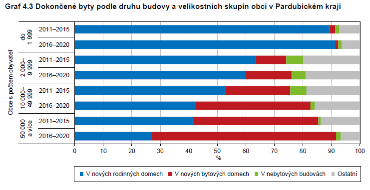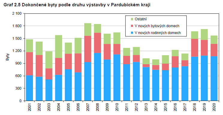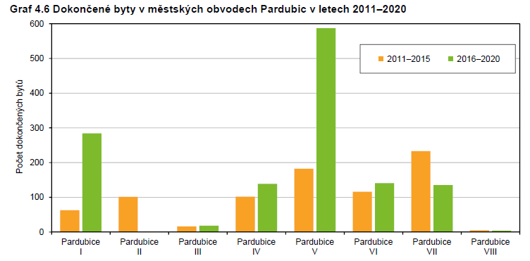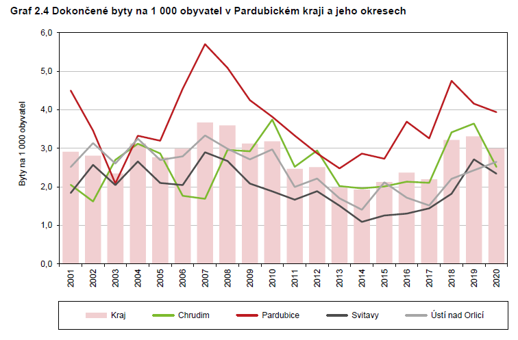 Rozmístění dokončené bytové výstavby v Pardubickém kraji