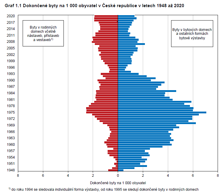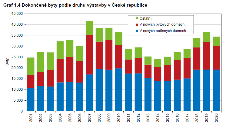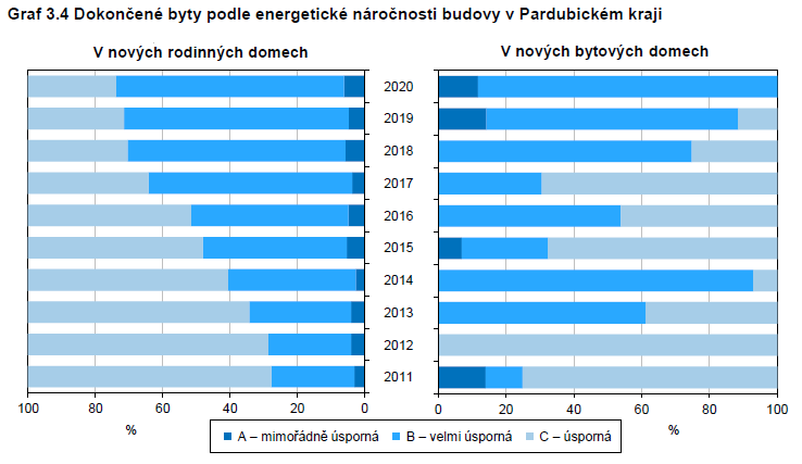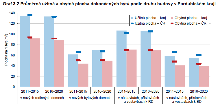 Bytová výstavba v Pardubickém kraji a jeho okresech podle fází