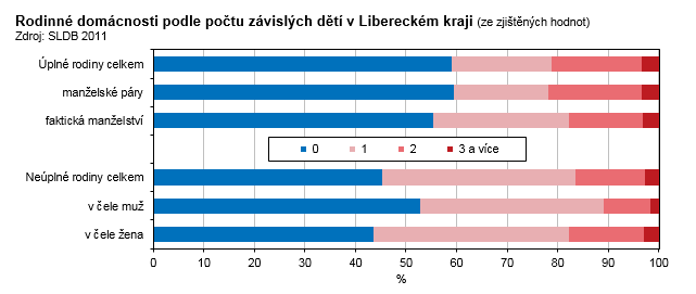 Rodinné domácnosti podle počtu závislých dětí v Libereckém kraji