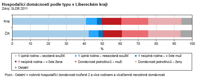 Hospodařící domácnosti podle typu v Libereckém kraji Zdroj: SLDB 2011