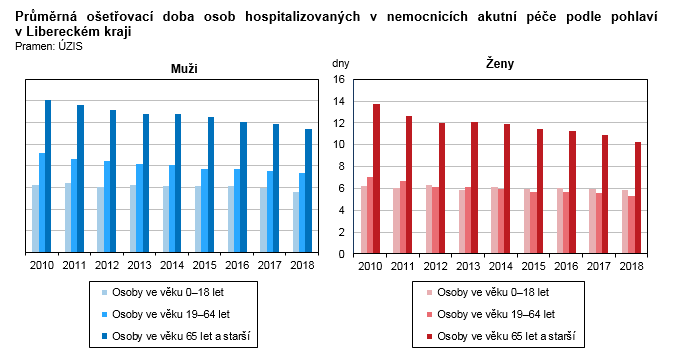 Průměrná ošetřovací doba osob hospitalizovaných v nemocnicích akutní péče podle pohlaví v Libereckém kraji