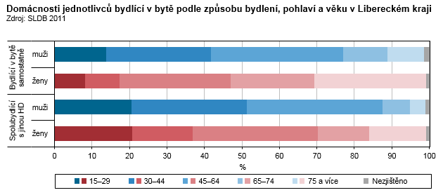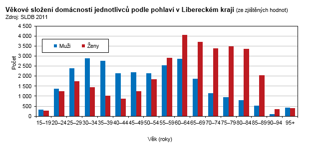 Věkové složení domácností jednotlivců podle pohlaví v Libereckém kraji