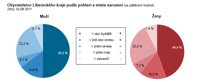Obyvatelstvo Libereckého kraje podle pohlaví a místa narození