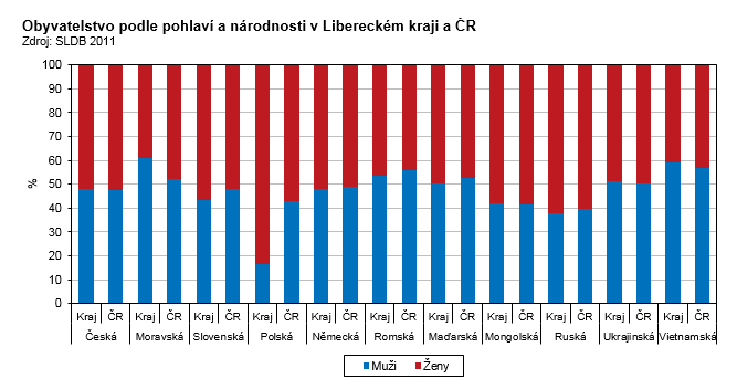 Obyvatelstvo podle pohlaví a národnosti v Libereckém kraji a ČR