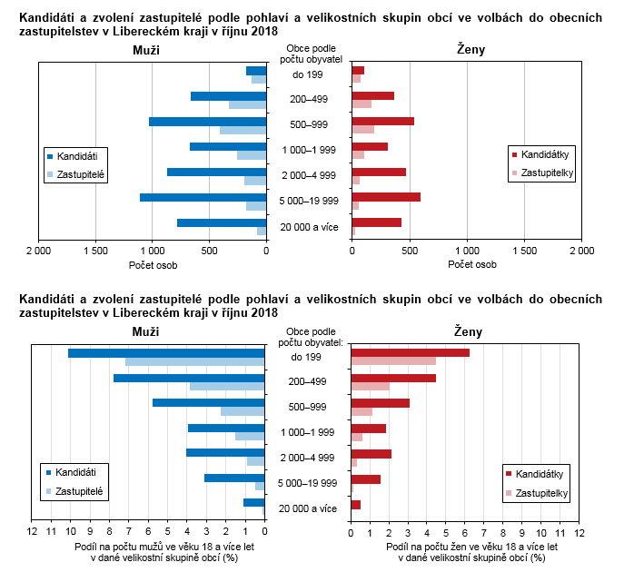 Kandidáti a zvolení zastupitelé podle pohlaví a velikostních skupin obcí ve volbách do obecních zastupitelstev v Libereckém kraji v říjnu 2018