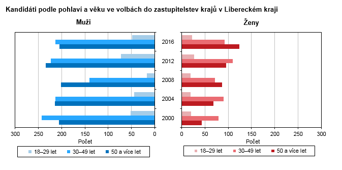 Kandidáti podle pohlaví a věku ve volbách do zastupitelstev krajů v Libereckém kraji