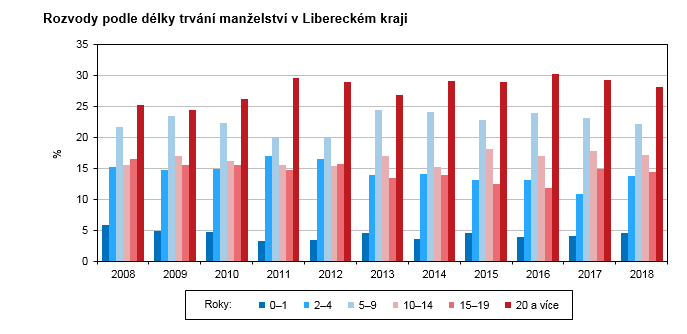 Rozvody podle délky trvání manželství v Libereckém kraji
