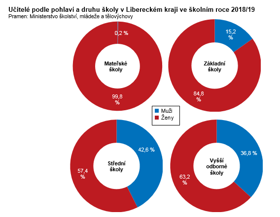 Učitelé podle pohlaví a druhu školy v Libereckém kraji ve školním roce 2018/19