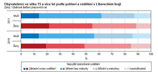 Obyvatelstvo ve věku 15 a více let podle pohlaví a vzdělání v Libereckém kraji