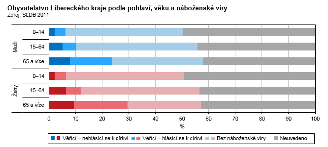 Obyvatelstvo Libereckého kraje podle pohlaví, věku a náboženské víry