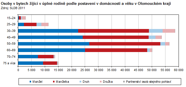 Osoby v bytech žijící v úpné rodině podle postavení v domácnosti a věku v Olomouckém kraji